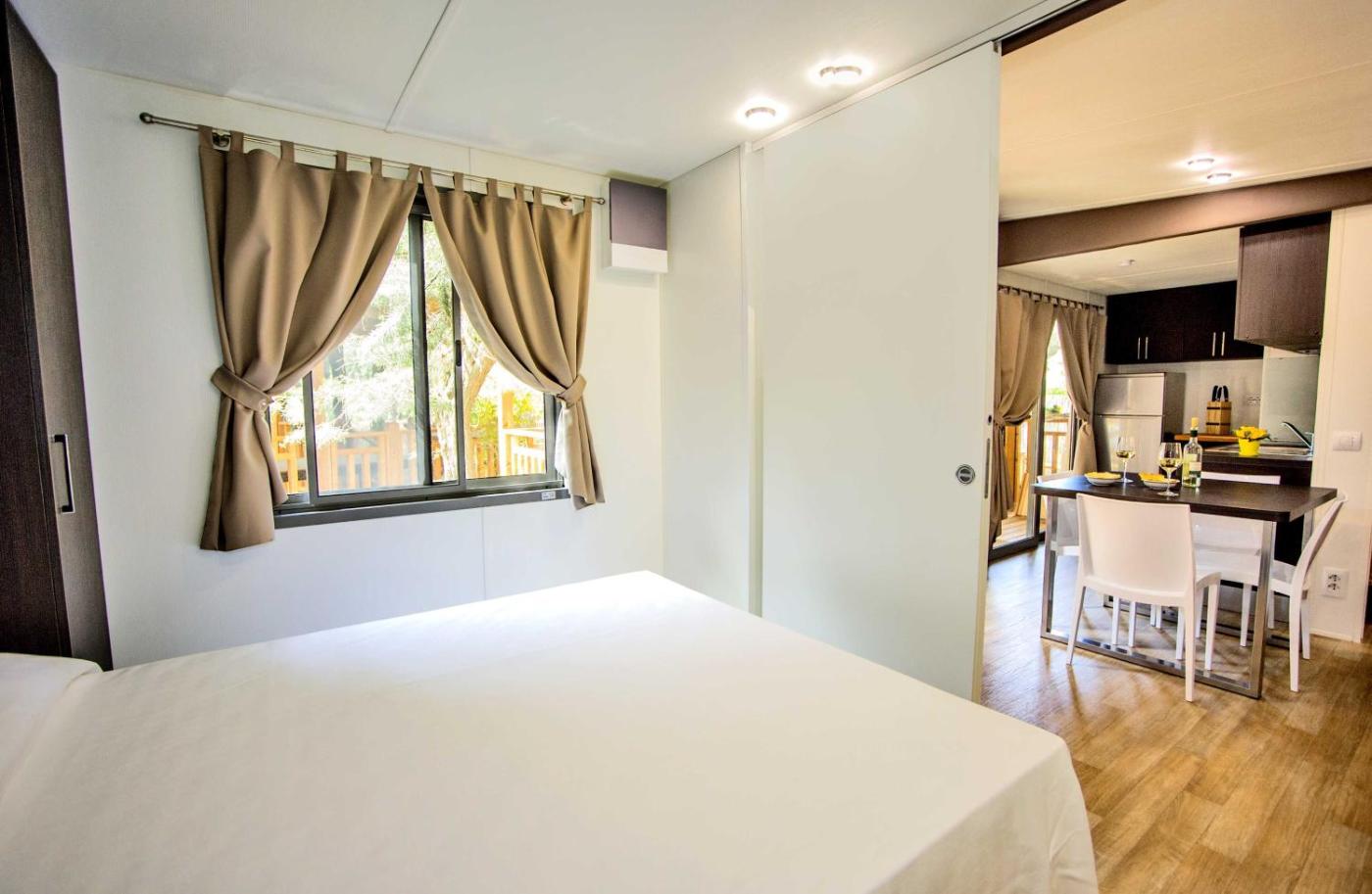Casa Mobile Deluxe con 2 Camere da Letto. Appartamento più ampio con patio, 2 camere da letto, TV a schermo piatto e connessione WiFi gratuita. Il bagno privato è completo di doccia e bidet. ;
