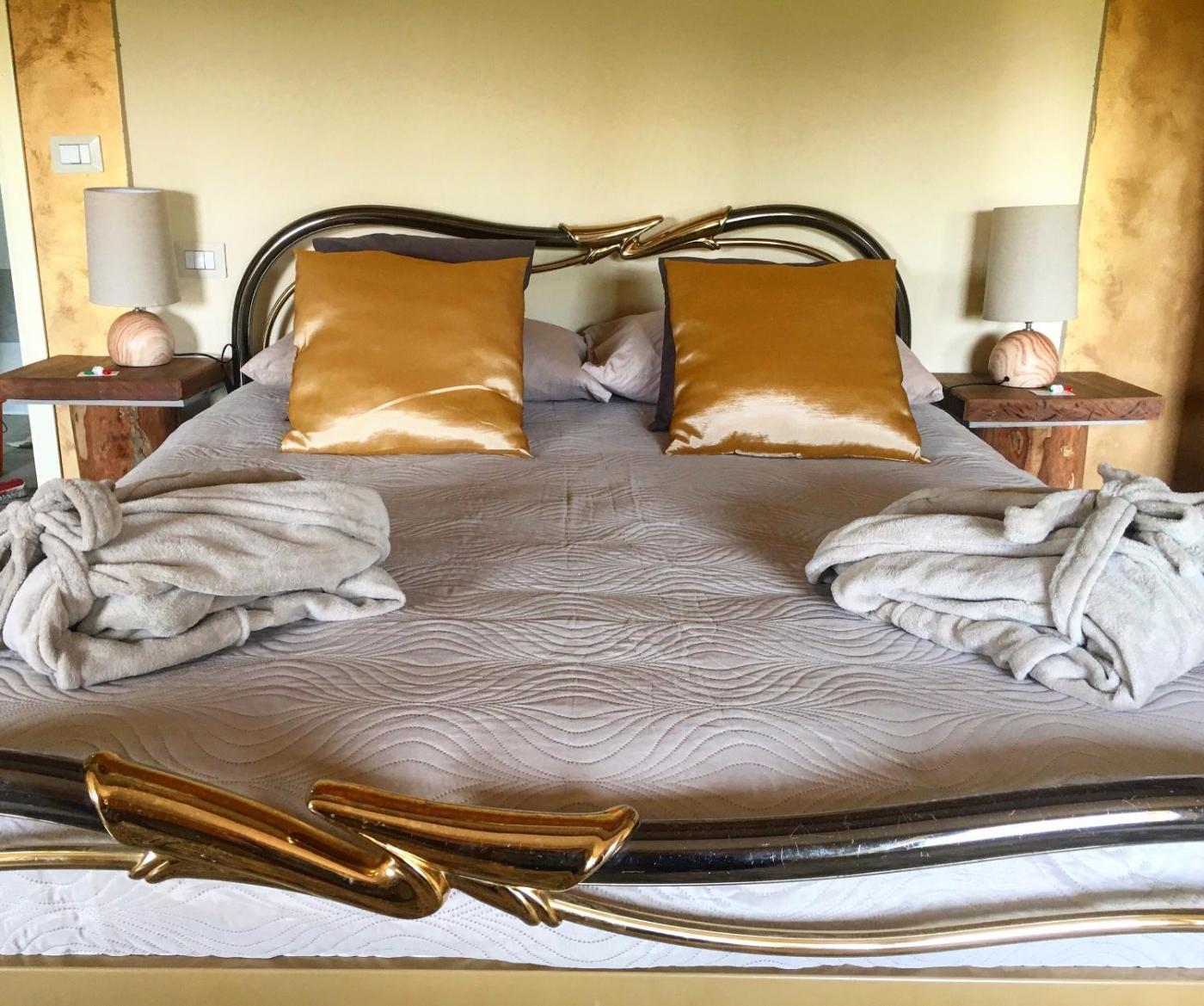 Camera Matrimoniale con Bagno in Comune. This double room offers a pool with a view. Providing free toiletries and bathrobes, this double room includes a shared bathroom with a bath, a shower and a bidet. The double room provides soundproof walls, garden views and winechampagne. The unit offers 1 bed.