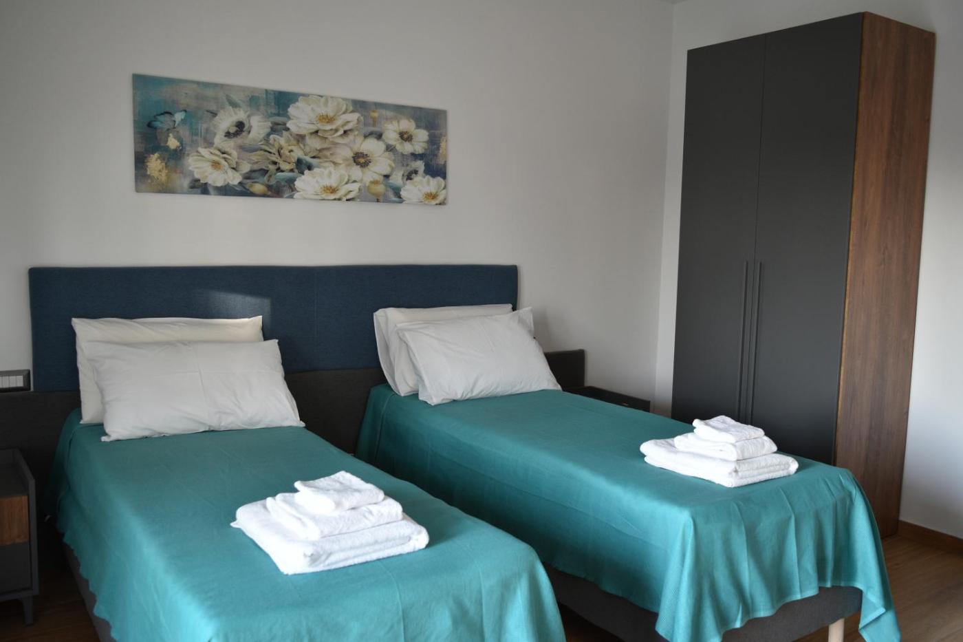 Camera MatrimonialeDoppia con Letti Singoli. Camera matrimonialedoppia con letti singoli dotata di aria condizionata, TV a schermo piatto con servizi di streaming, bagno privato e balcone. ;