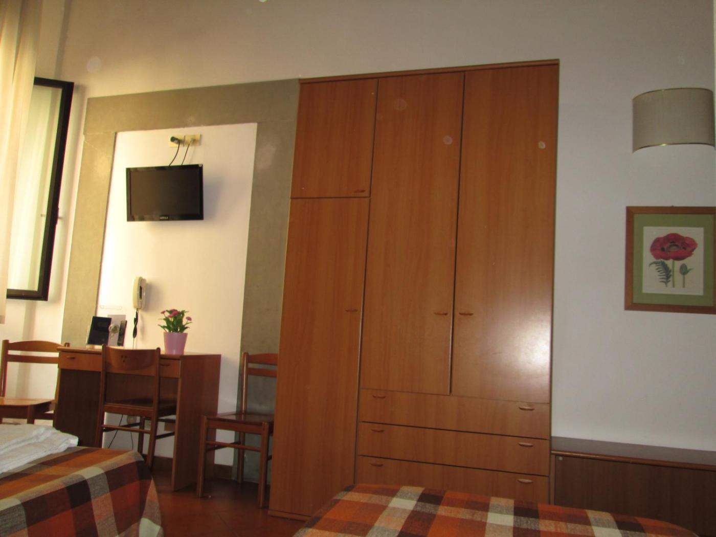 Camera Tripla Classic. Camera tripla dotata di un bagno privato condi cortesia, doccia a filo pavimento, asciugacapelli e vasca o doccia. Questa sistemazione climatizzata offre una TV a schermo piatto con canali satellitari, un ingresso indipendente, un armadio, un pavimento piastrellato e la vista sulla città . L’alloggio dispone di 2 letti. ;