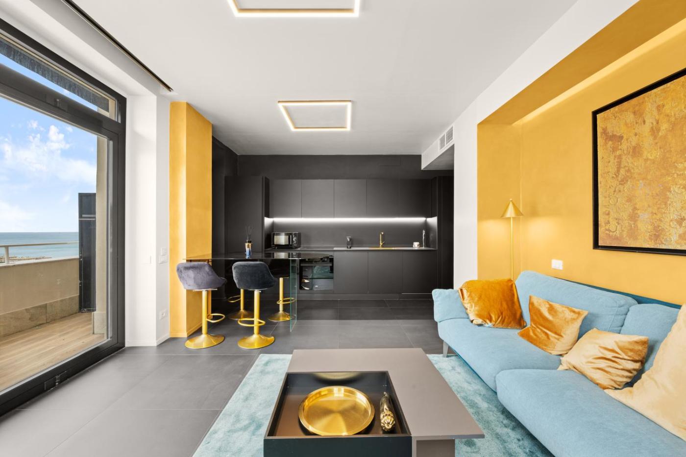 Appartamento con 2 Camere da Letto e Vista Mare. Boasting a private entrance, this air-conditioned apartment comes with 1 living room, 2 separate bedrooms and 1 bathroom with a shower and a bidet. In the kitchen, guests will find a stovetop, a refrigerator, a dishwasher and kitchenware. The spacious apartment features a flat-screen TV with streaming services, a washing machine, soundproof walls, a tea and coffee maker as well as sea views. The unit has 3 beds.