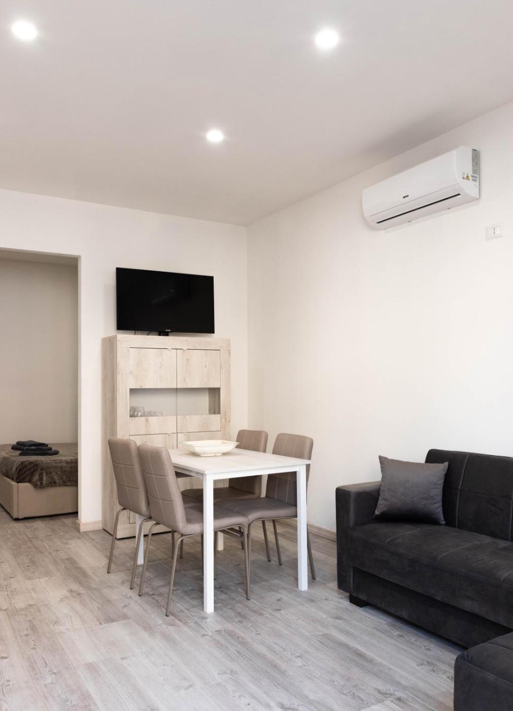 Appartamento con 1 Camera da Letto. Featuring a private entrance, this air-conditioned apartment is comprised of 1 living room, 1 separate bedroom and 1 bathroom with a shower and a bidet. In the fully equipped kitchen, guests will find a stovetop, a refrigerator, kitchenware and an oven. The apartment offers a washing machine, a tea and coffee maker, a seating area, a dining area and a flat-screen TV with streaming services. The unit offers 2 beds.