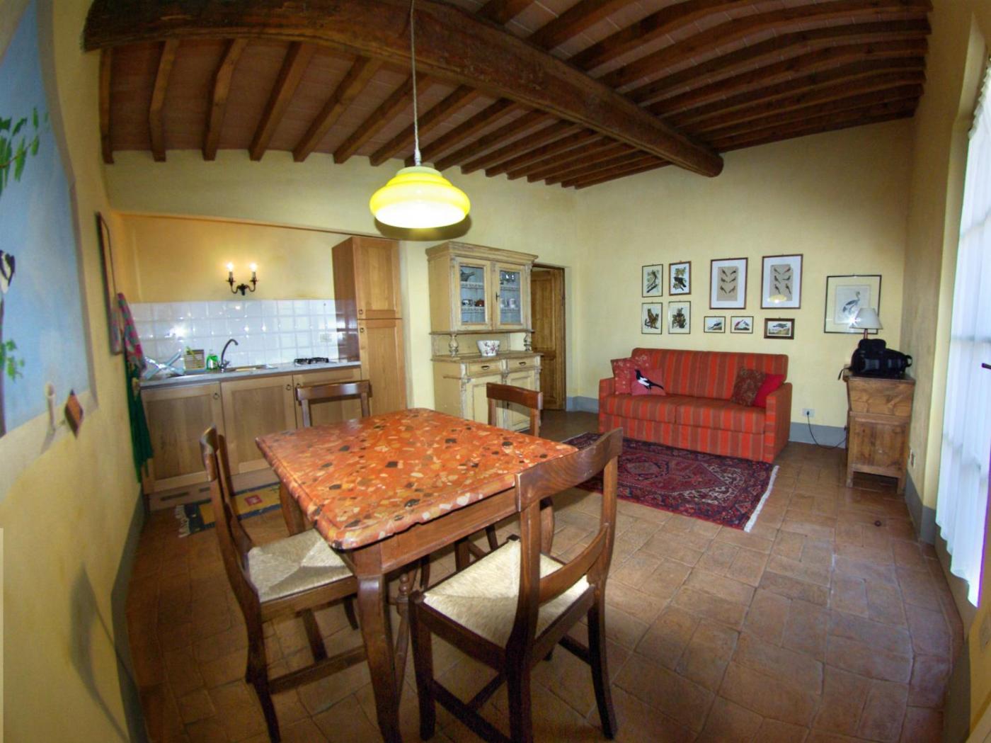 Appartamento con 1 Camera da Letto. Rustically furnished, the apartment has terracotta floors and wood-beamed ceilings. It features a kitchen with refrigerator and a private bathroom. ;