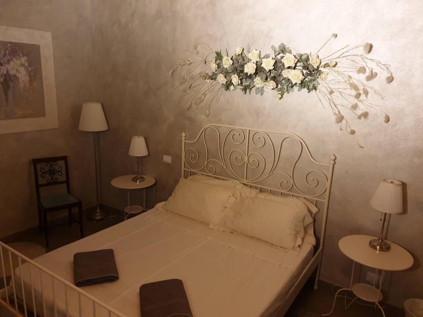 Camera Matrimoniale con Bagno Privato. Camera matrimoniale dotata di bagno privato con doccia, bidet, asciugacapelli edi cortesia. Dispone inoltre di aria condizionata, armadio, riscaldamento, TV a schermo piatto e vista sul giardino. LunitĂ presenta 1 letto. ;