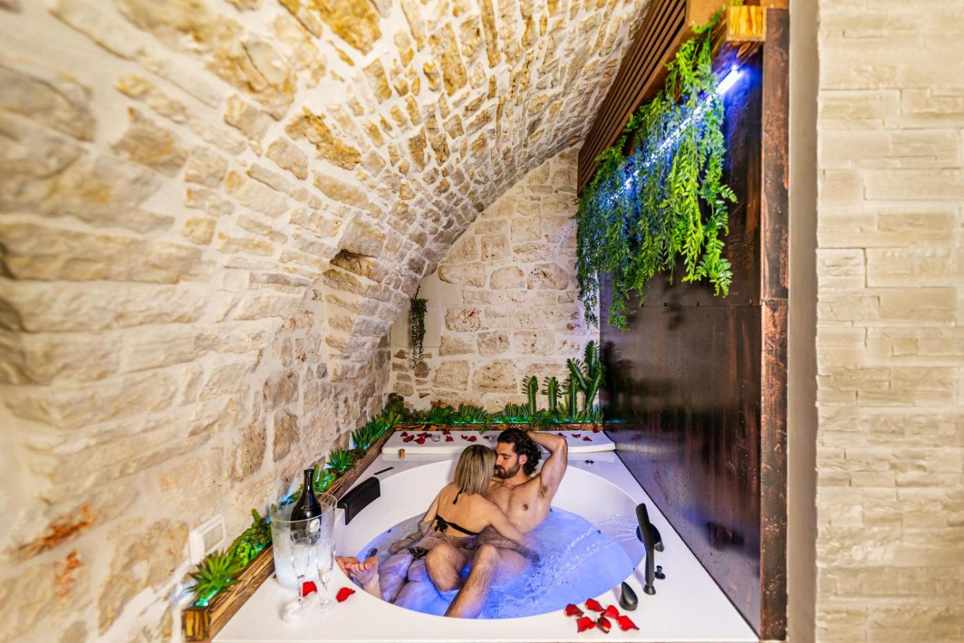 Camera Matrimoniale con Vasca Idromassaggio. This double rooms standout features are the hot tub and fireplace. Offering free toiletries and bathrobes, this double room includes a private bathroom with a walk-in shower, a bidet and a hairdryer. In the kitchenette, guests will find a stovetop, a refrigerator and kitchenware. The spacious air-conditioned double room offers a flat-screen TV with streaming services, a private entrance, a tea and coffee maker and a dining area. The unit offers 1 bed.
